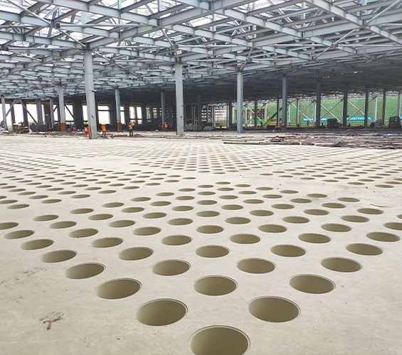 圓形華夫板的生產工藝具有以下優勢:1.保證成孔準確與樓板平整度采用的生產工藝,使用標準模板...